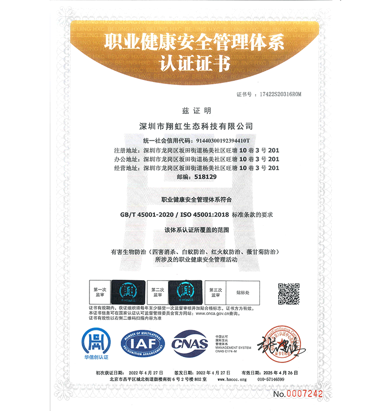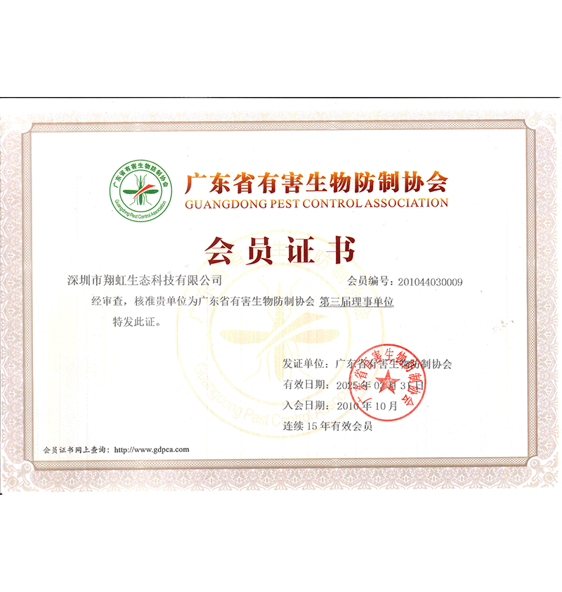 深圳市翔虹生態(tài)科技有限公司成立于1995年,是深圳最早成立的專業(yè)蟲害防治公司之一。公司發(fā)展至今獲得全國有害生物防制服務(wù)A級資質(zhì)、廣東省有害生物防制服務(wù)A級資質(zhì)、深圳市有害生物防制服務(wù)A級資質(zhì)、廣東省有害生物防制服務(wù)A級資質(zhì)、深圳市有害生物防制服務(wù)甲級資質(zhì)的單位,是中國有害生物防治協(xié)會(huì)會(huì)員、廣東省有害生物防治協(xié)會(huì)會(huì)員、深圳市有害生物防治協(xié)會(huì)理事單位,多次獲得“深圳市十佳消殺單位”榮譽(yù)。